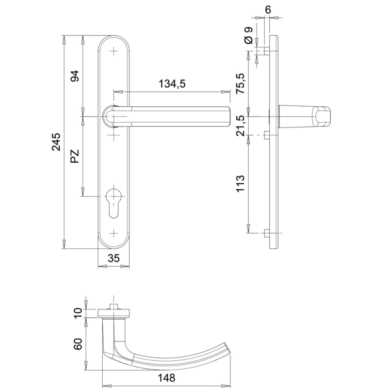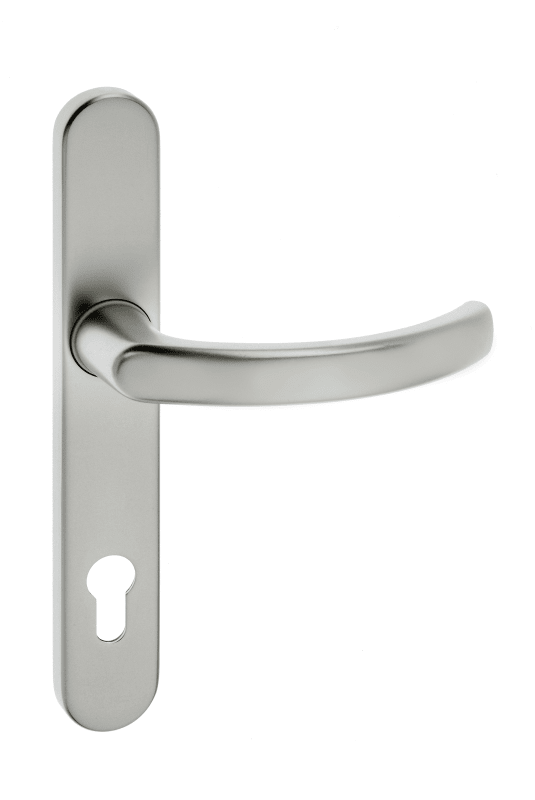 Innenschilder Druckguss, Außenschilder ALU PZ massiv, EST PZ = Stahlunterkonstruktion Drücker-Lagerung: fest-drehbar, innen mit Rückholmechanik Drücker: rechts/links verwendbar Stütznocken: Metallstütznocken im Innen- und Außenschild 10 mm Verschraubung: Bohrloch-Ø für M6, verdeckt geprüft nach EN179